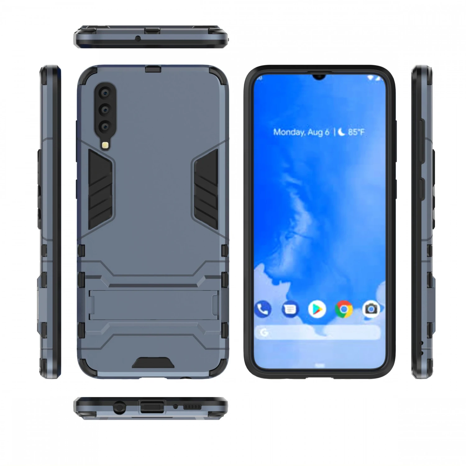Les contours de la coque antichoc Galaxy A70 bleu foncé sont relevés légèrement pour éviter que votre écran ne touche le sol en cas de rencontre fortuite avec celui-ci.