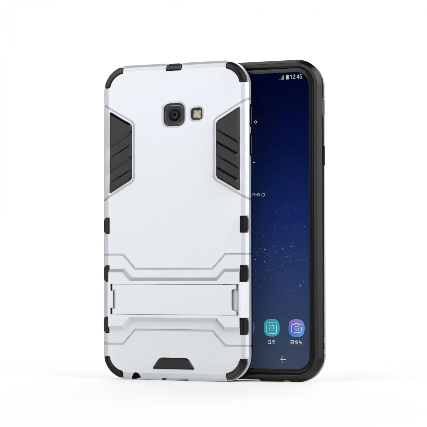 Coque Antichoc Galaxy J4 Plus Avec Petit Support Cool Guard Argent