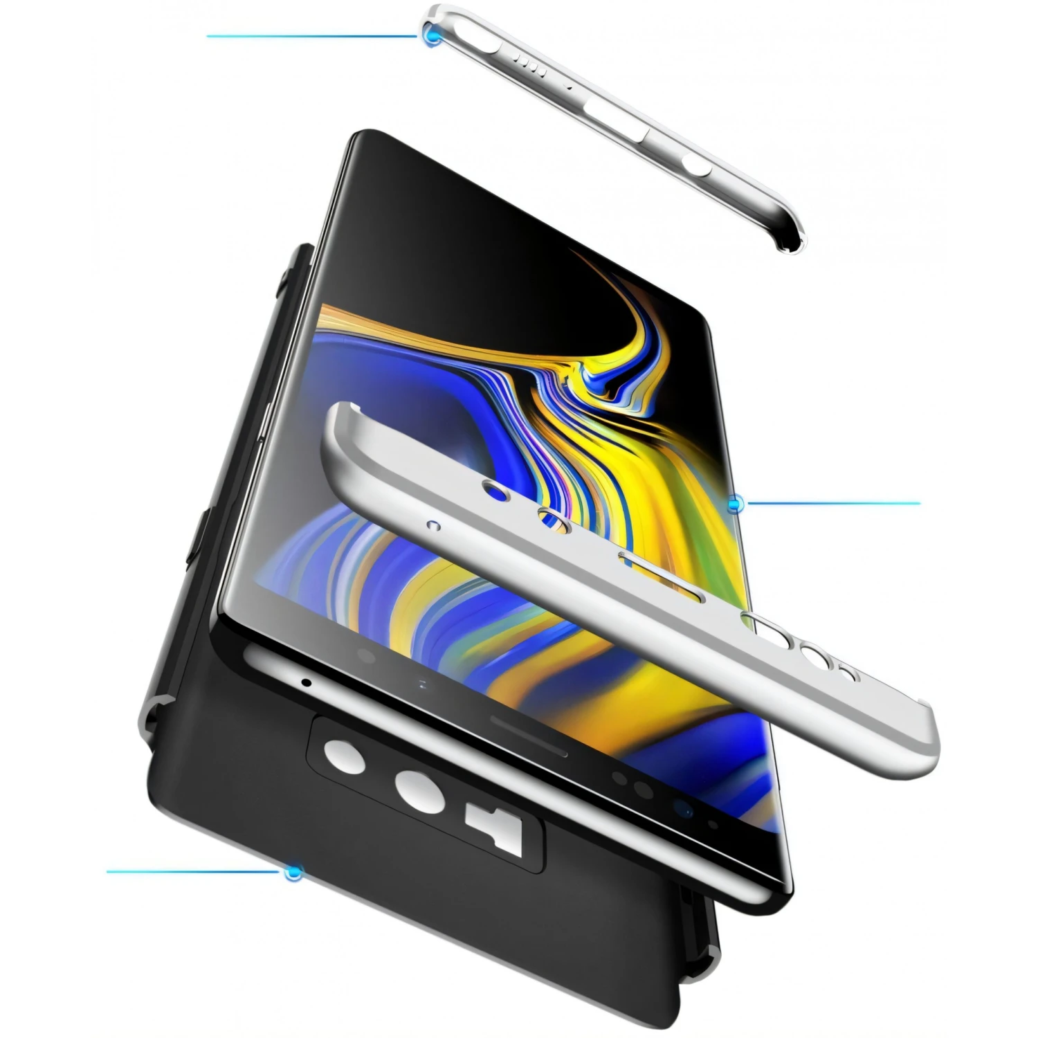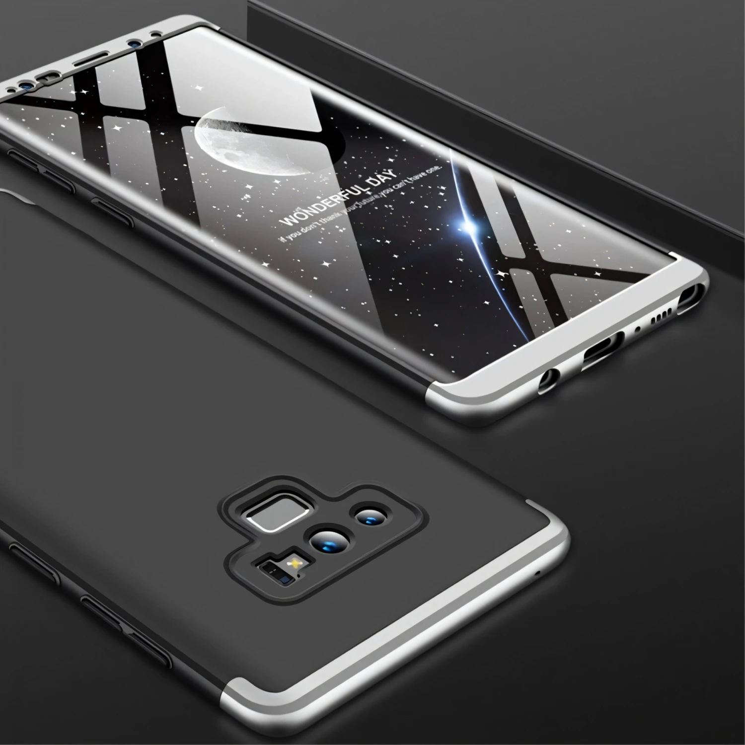 La coque en plastique argent détachable GKK, qui est conçue spécialement pour le Galaxy Note 9 épouse parfaitement ses courbes pour une protection rapprochée. Elle est composée en 3 parties et s’assemblent sur le mobile. Le design du Note 9 est totalement préservé.