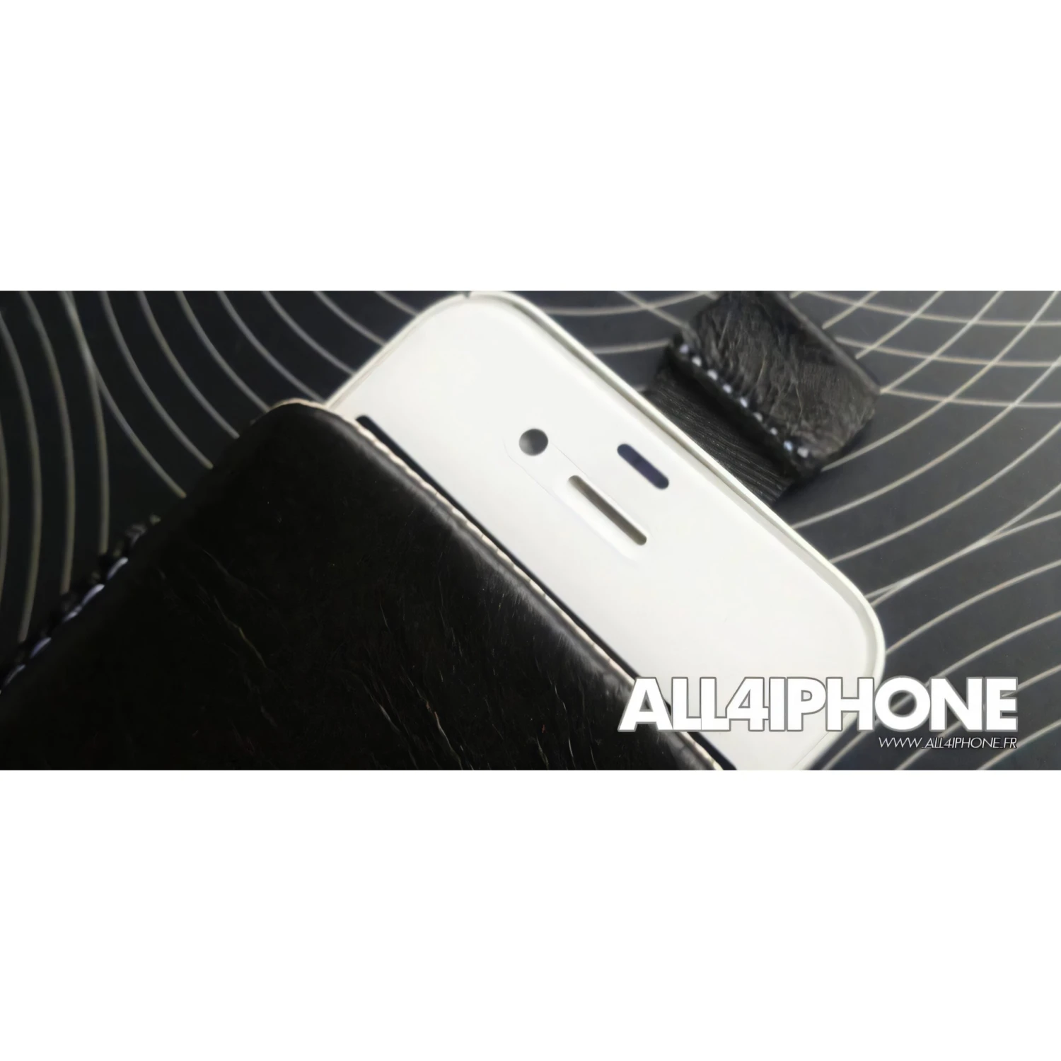Très belle pochette en cuir compatible avec les iPhone 4, 4S, 3G et 3GS. Le téléphone est bien à l’abri et se retire grâce à sa petite languette.