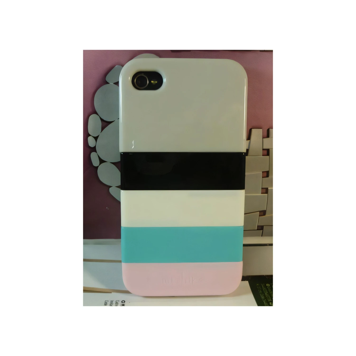 Jolie coque Iphone 4/4S fantaisie dite Rainbow (Arc-en-ciel) composée de plusieurs éléments de couleurs différentes.