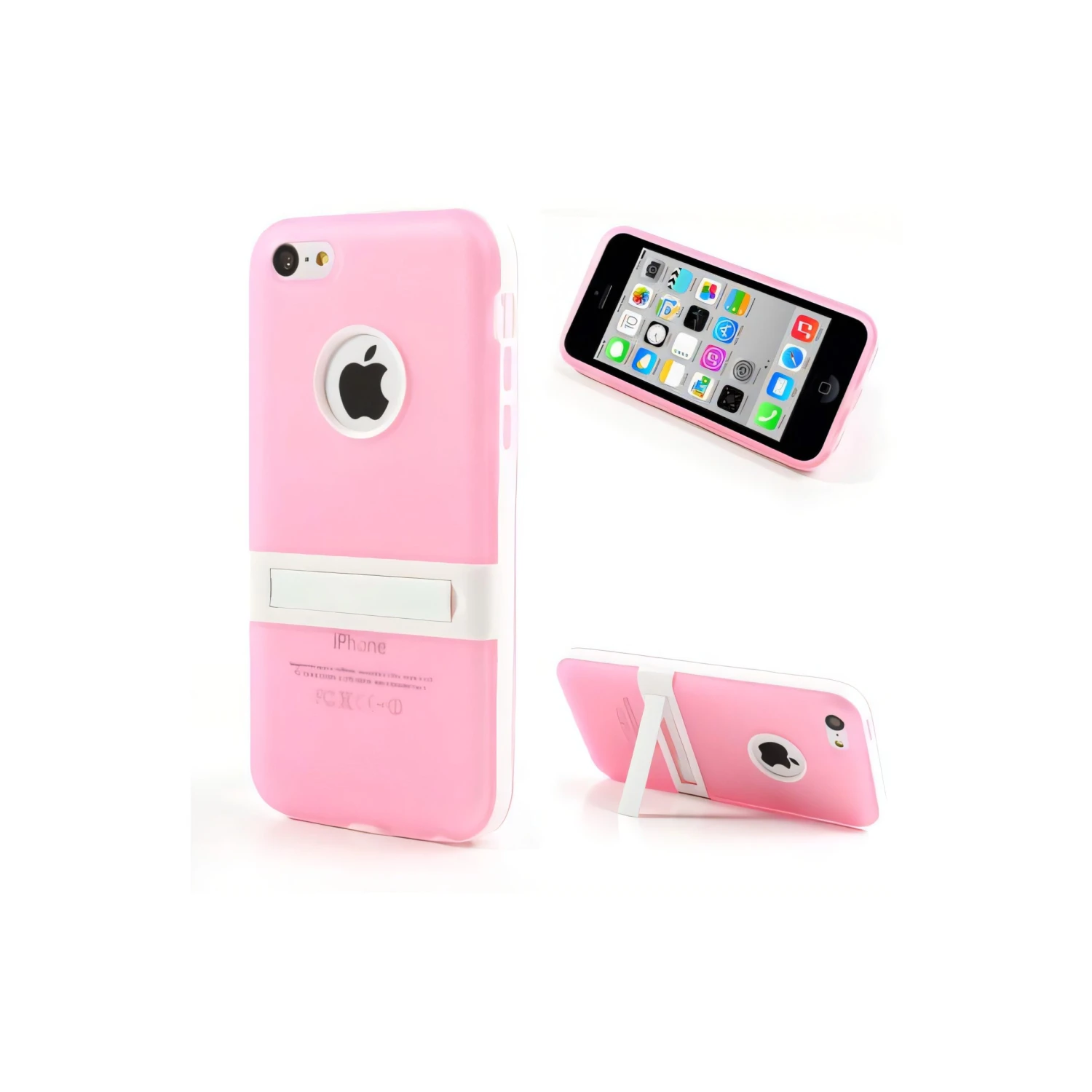 Coque en silicone hybride pour iPhone 5C. Coque équiper d’un petit clapet qui permet de positionner le téléphone à la verticale pour visionner vos vidéos.