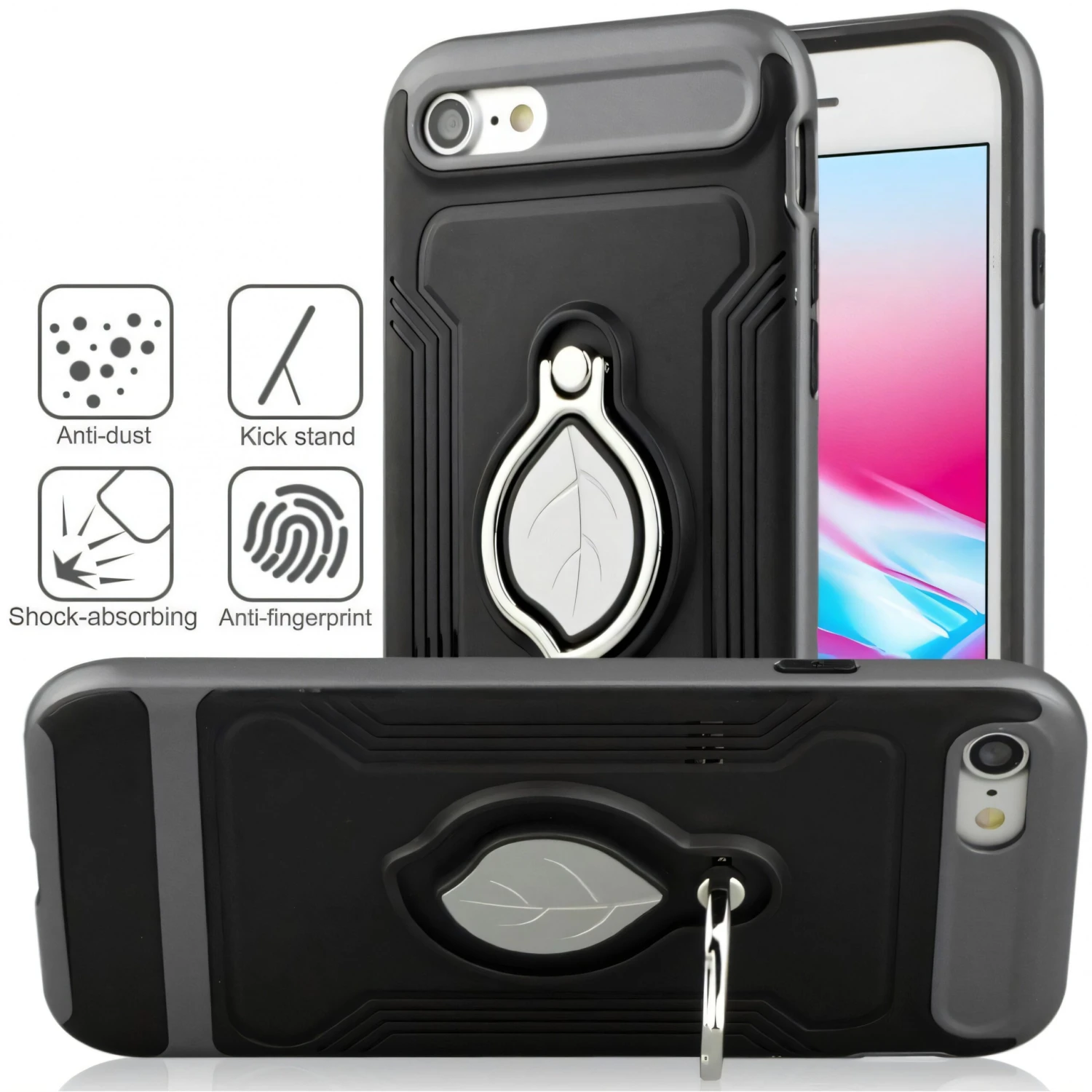 Habillez votre iPhone 8 et votre iPhone 7 avec la coque issue des usines de Angibabe et vous pourrez le transporter sans avoir à craindre qu’il ne vous échappe des mains. Tout cela, grâce au petit anneau incrusté au dos de la coque afin d’y glisser votre doigt. Il peut aussi servir à mettre votre iPhone de manière horizontale. Idéal, pour regarder vos vidéos.