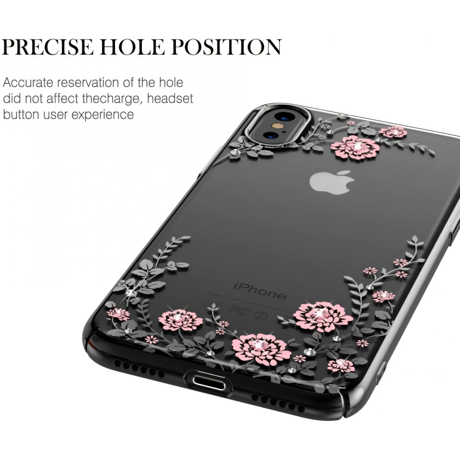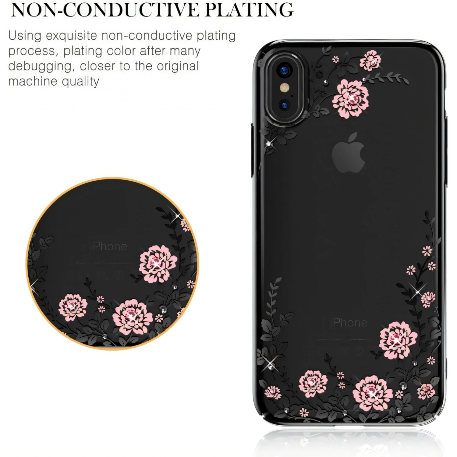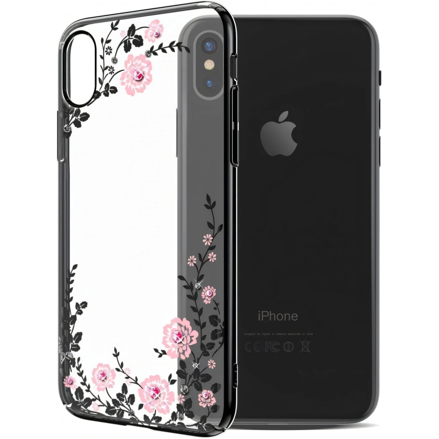 Coque IPhone X Et XS Swarovski Fleurs KAVARO Noir