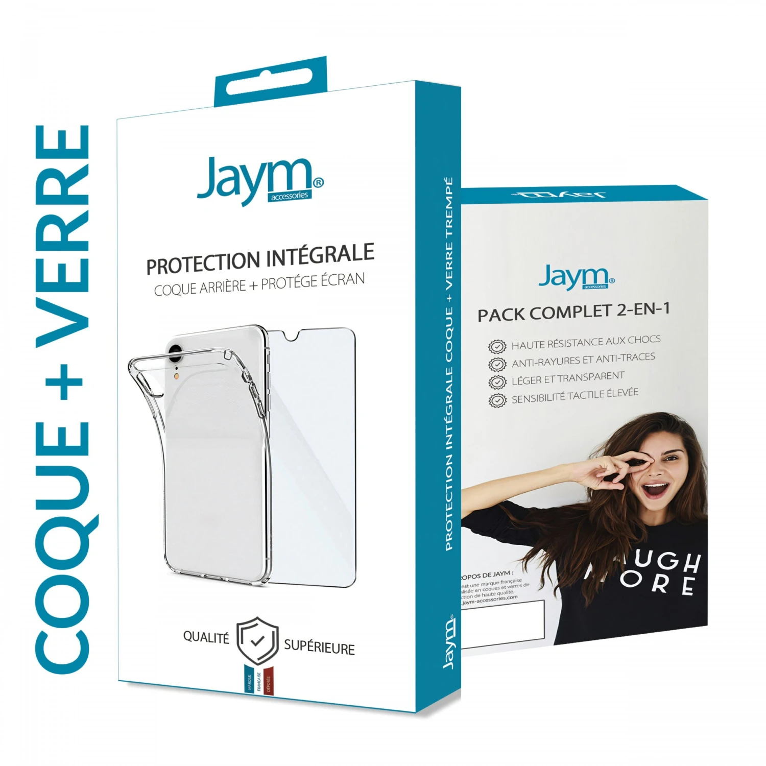 Découvrez le pack de protection Jaym® comprenant une coque souple transparente traitée anti-UV et anti-bulles, et un verre trempé 9H ultra-résistant traité anti traces de doigts et spécialement développé pour le mobile.