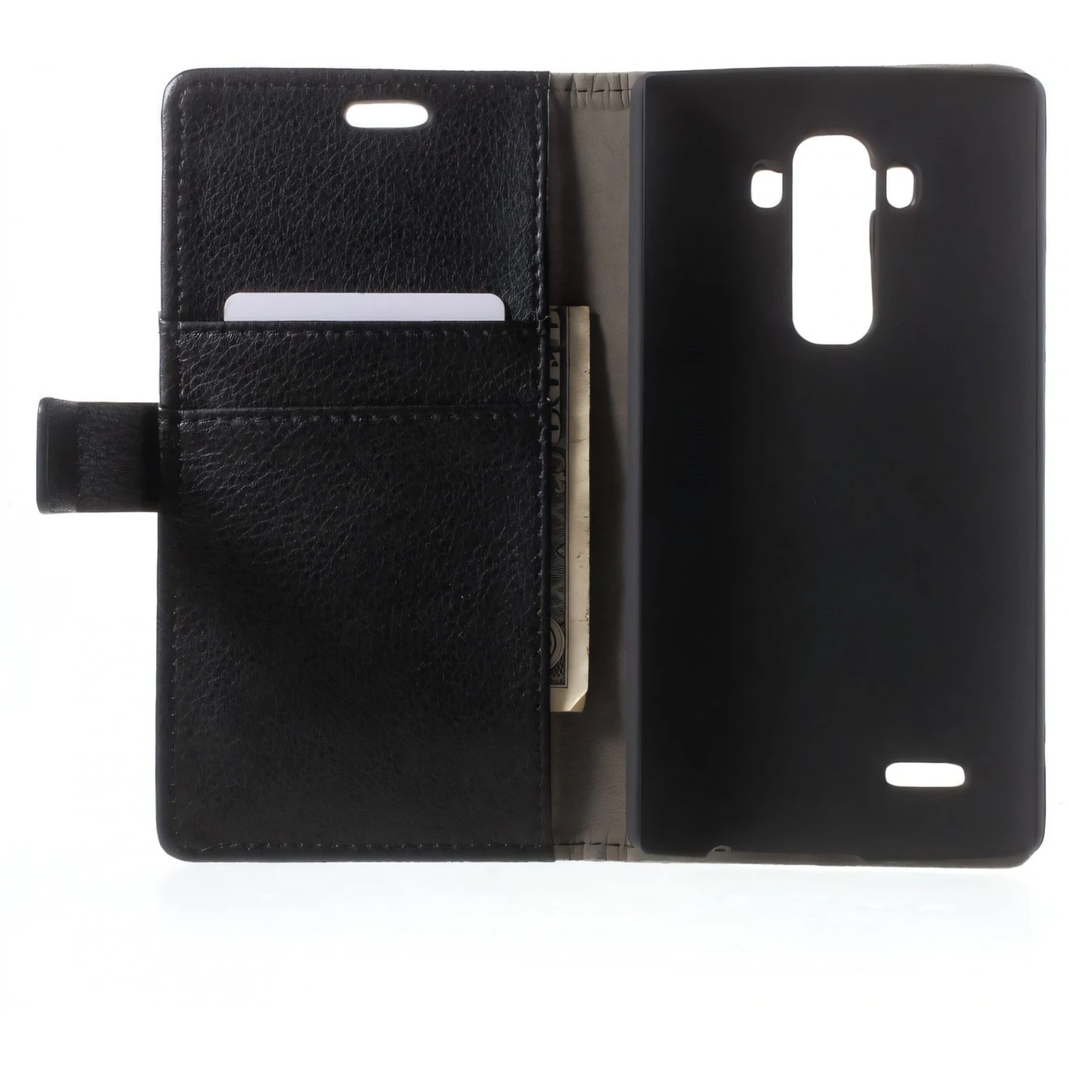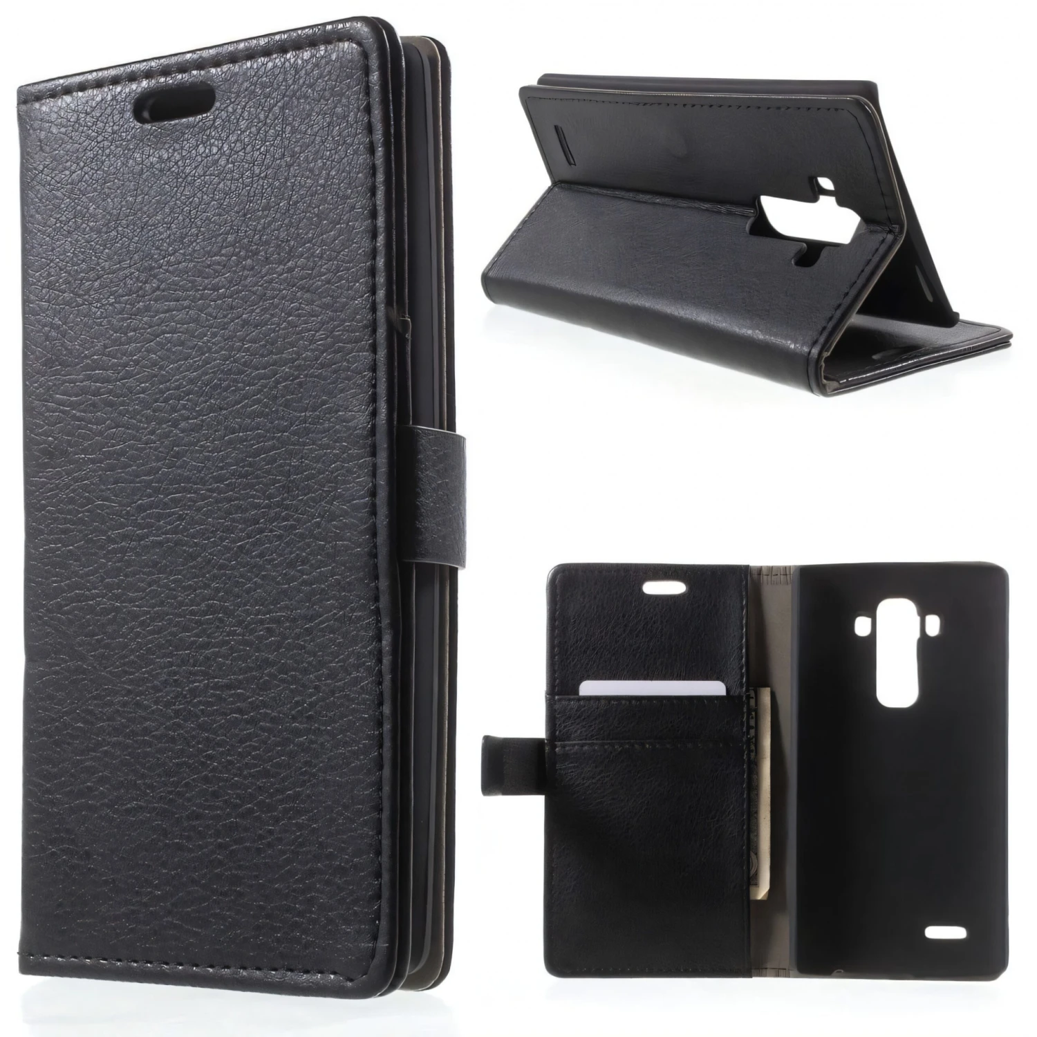 Etui similicuir portefuille de bonne facture pour votre LG G4. L’appareil est complètement protégé dans son écrin.