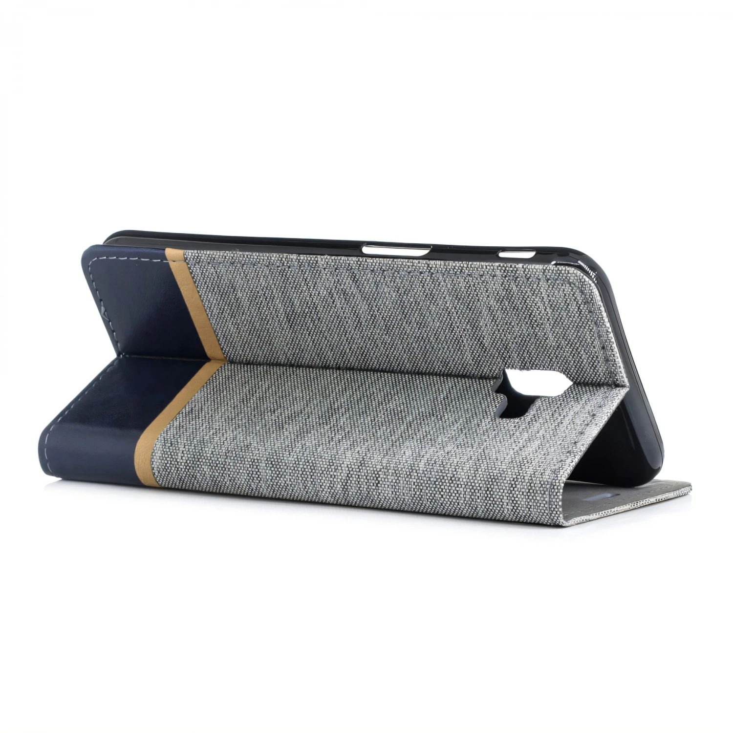Etui Portefeuille Samsung Galaxy J6+ Et Galaxy J6 Prime Avec Tissu Extérieur Gris