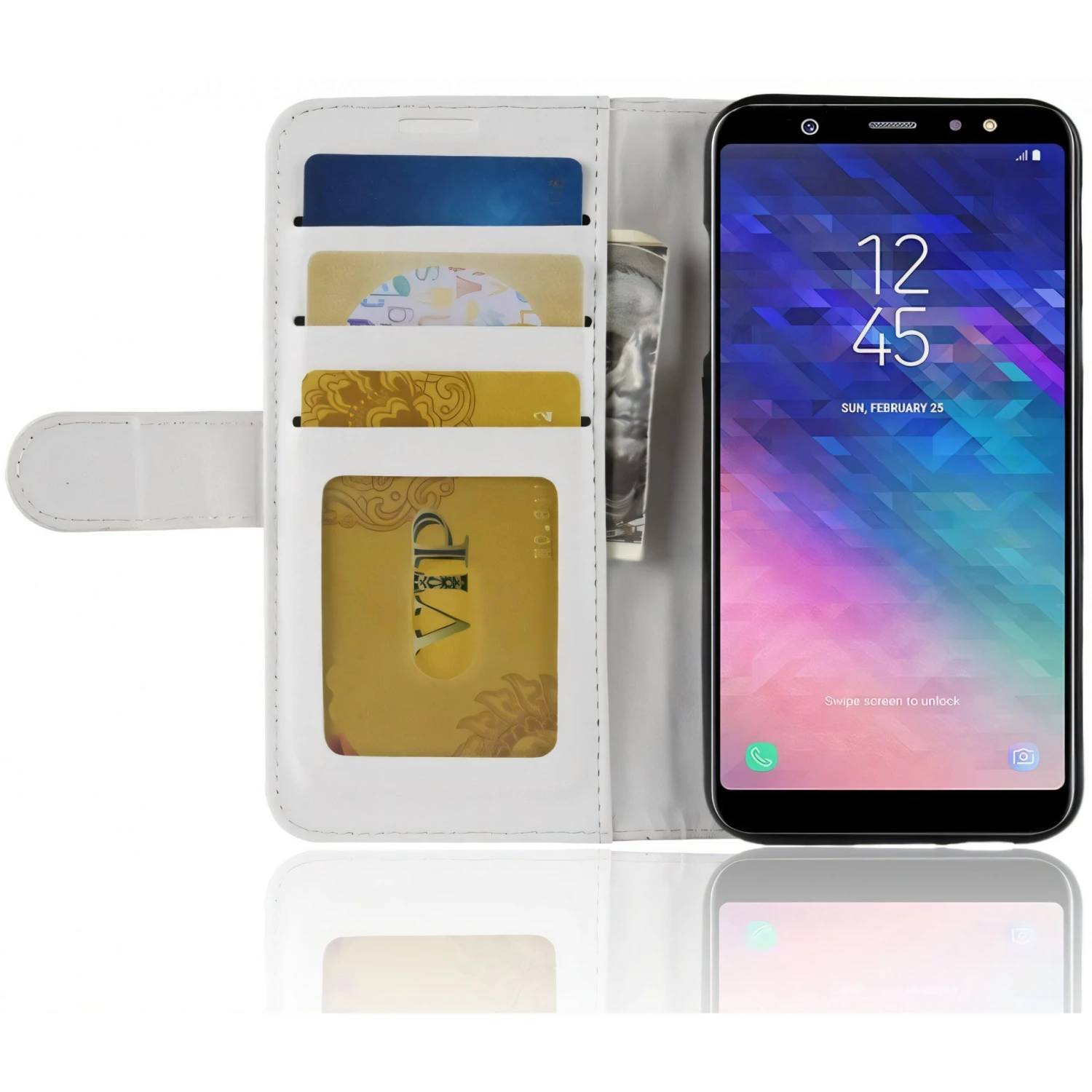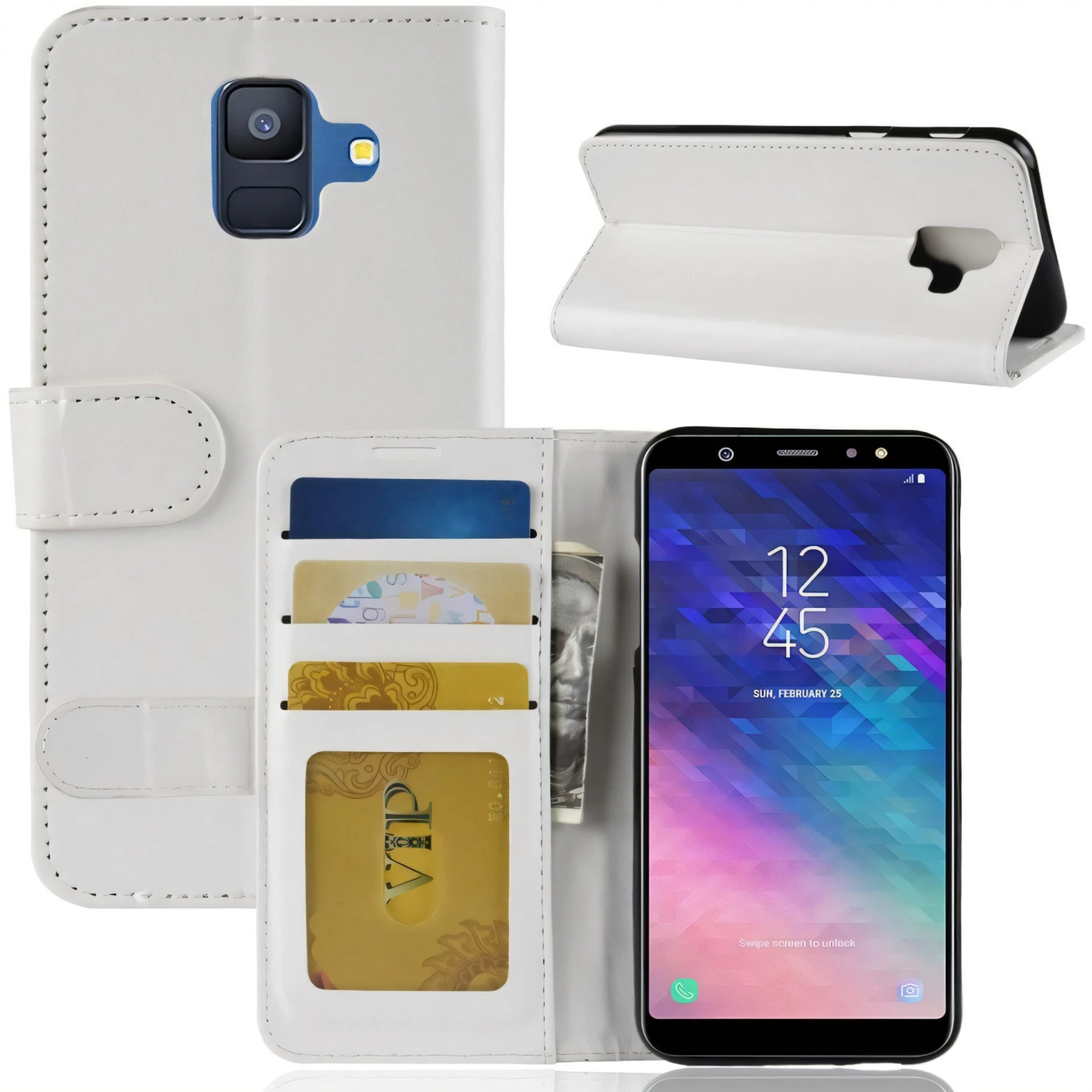 L’Ă©tui portefeuille Ă une double particularitĂ©. Il doit protĂ©ger votre Galaxy A6 2018 de tous les traumatismes qu’il pourrait subir. Et, il peut transporter vos cartes et billets dans les compartiments prĂ©vus Ă cet effet. Inutile de vous dire qu’il restera toujours près de vous.