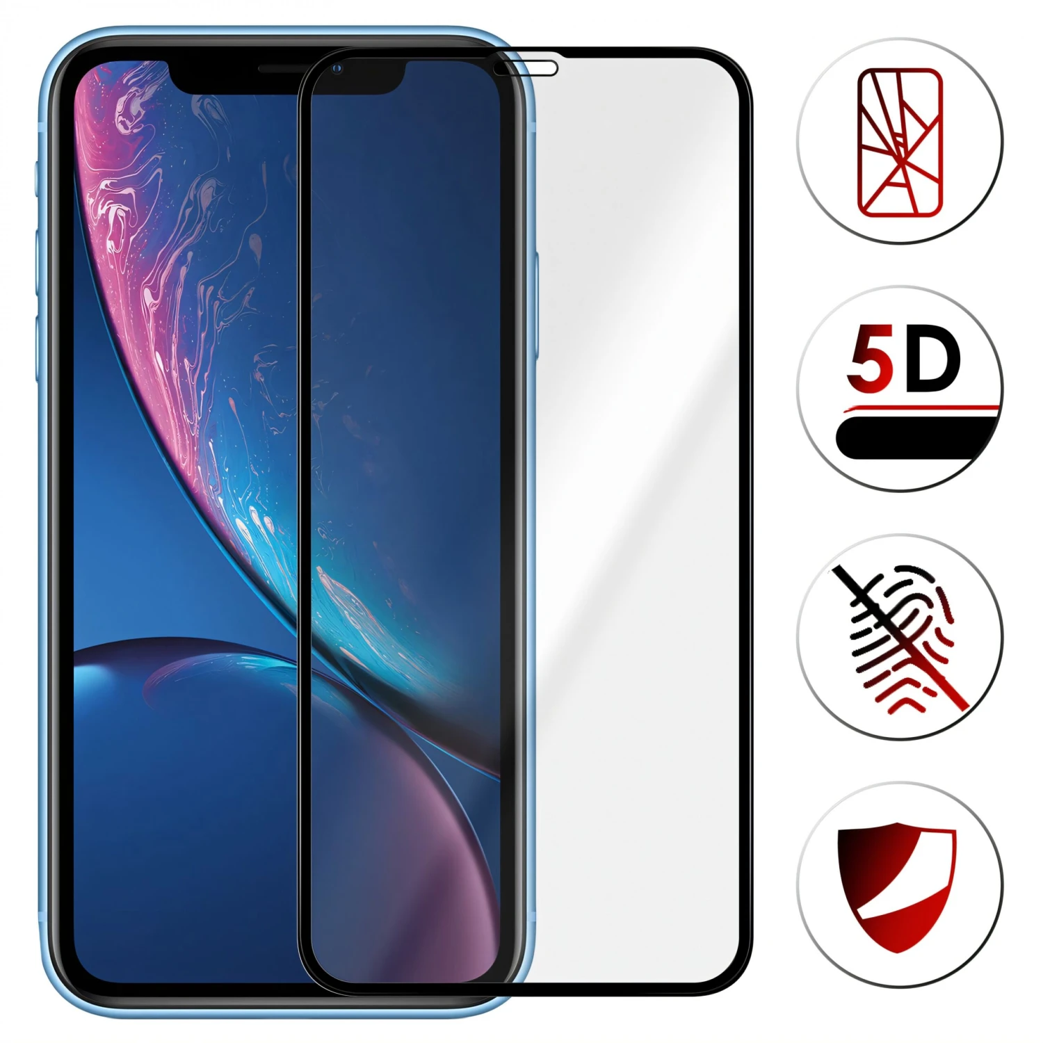 Film En Verre Trempé Iphone XR Et IPhone 11 Noir – 5D